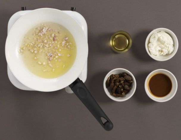 Ajouter la crème et le fond brun et laisser cuire pour faire épaissir la sauce.