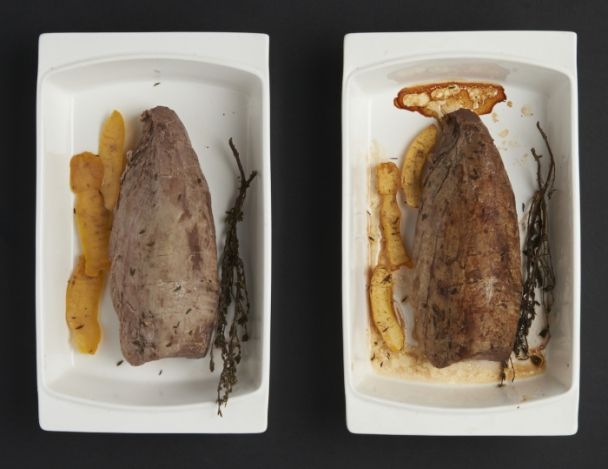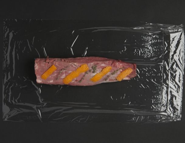 DifficileParer les filets c'est à dire ôter les parties nerveuses et graisseuses. Poser de larges zestes d’orange, des branches de thym intercalés sur le dessus du filet. Rouler dans un double film en serrant bien pour former un boudin de 5cm de diamètre. Cuire en vapeur à 63°C, 56°C à cœur. Refroidir.