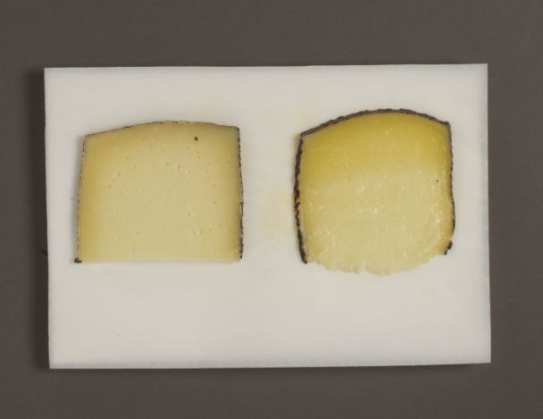 MoyenFaire cuire sur une plaque à pâtisserie anti-adhésive les tranches de Manchego (160°C, Th 6). Débarrasser sur du papier absorbant.