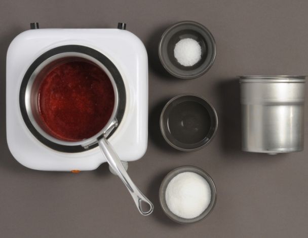 TrèsFaire bouillir le tout et passer ensuite en sorbetière. Réserver au congélateur.