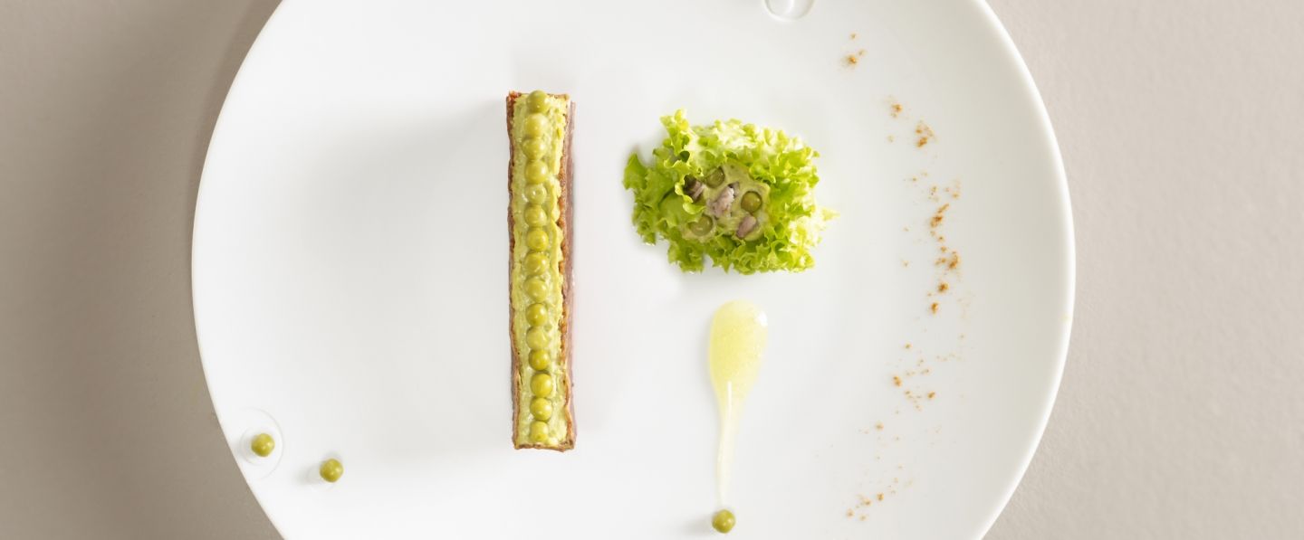 Récupérer 4 grandes feuilles de laitue, les saler et les passer au micro-ondes pendant 15. Les plonger immédiatement dans l’eau glacée et les égoutter. Y déposer la mousse de petits pois au centre de chacune, replier ensuite les bords et les rouler en nems.