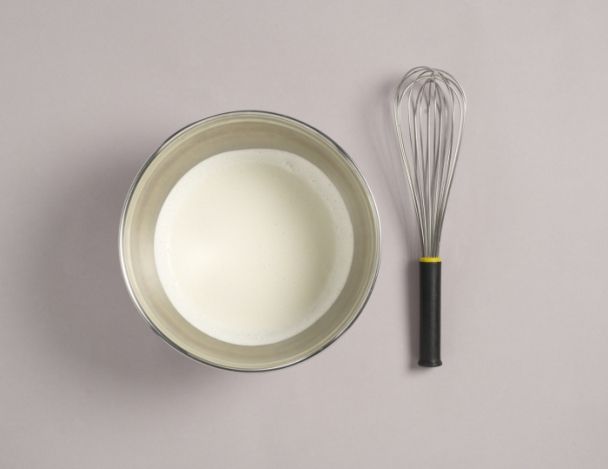 FacileDans un récipient, monter la crème liquide au fouet. Obtenir une crème mousseuse. Réserver au frigo.