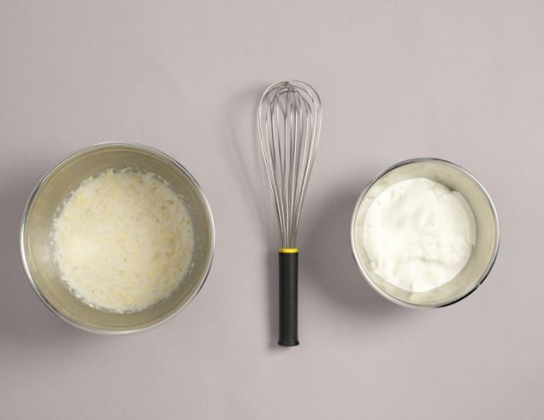 Ajouter et mélanger la crème mousseuse à l'aide d'un fouet.