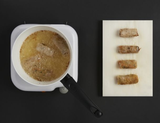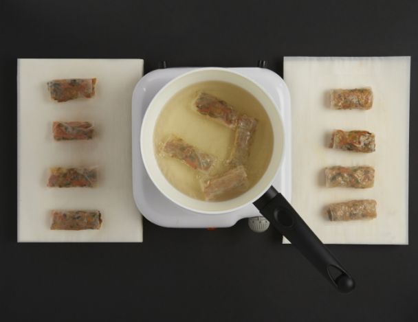 Frire les nems à 160 °C jusqu'à légère coloration, égoutter.