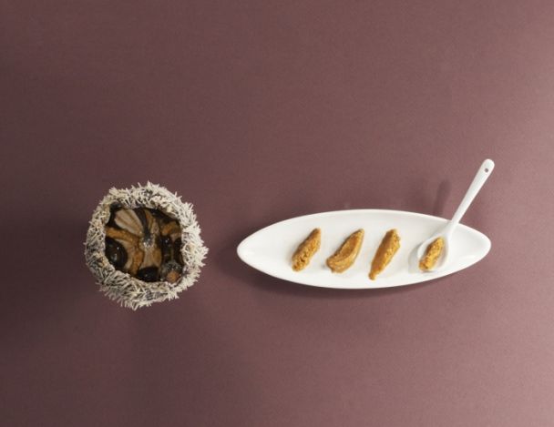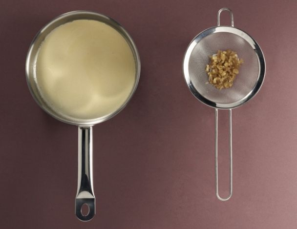 Oter délicatement les langues d'oursins à l'aide d'une cuillère à café et filtrer l'eau des oursins.