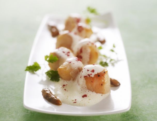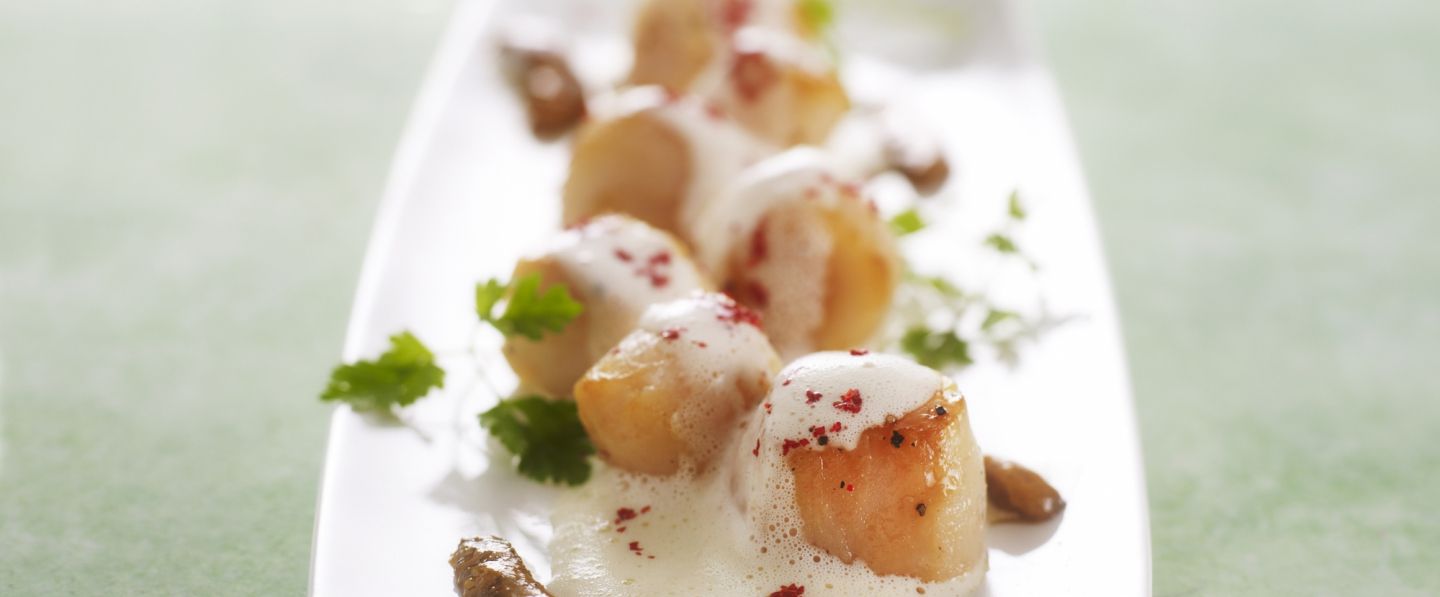 Ce défilé de noix de Saint-Jacques en émulsion d'oursin est parfumé et délicat, les noix de Saint-Jacques expriment toute leur finesse dans cette recette de chef !