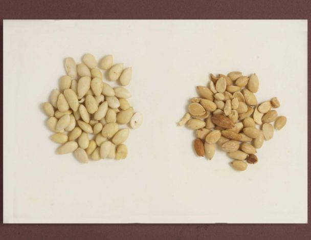 Ensuite, concasser les amandes au rouleau à pâtisserie ou au pilon.