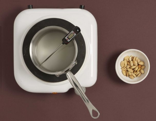 MoyenÉtaler les amandes sur une plaque de cuisson et les torréfier au four à 160 °C (th. 5) pendant environ 10 minutes jusqu'à ce qu'elles soient dorées.