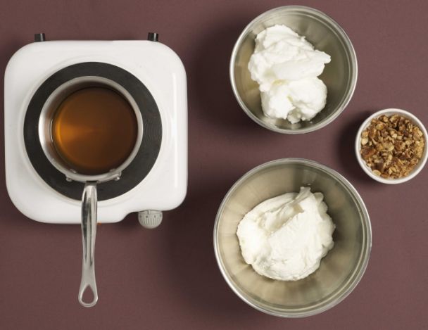 Commencer à battre les blancs en neige. Faire bouillir le miel 1 minute et le verser brûlant sur les blancs tout en continuant de les battre, jusqu'à complet refroidissement.