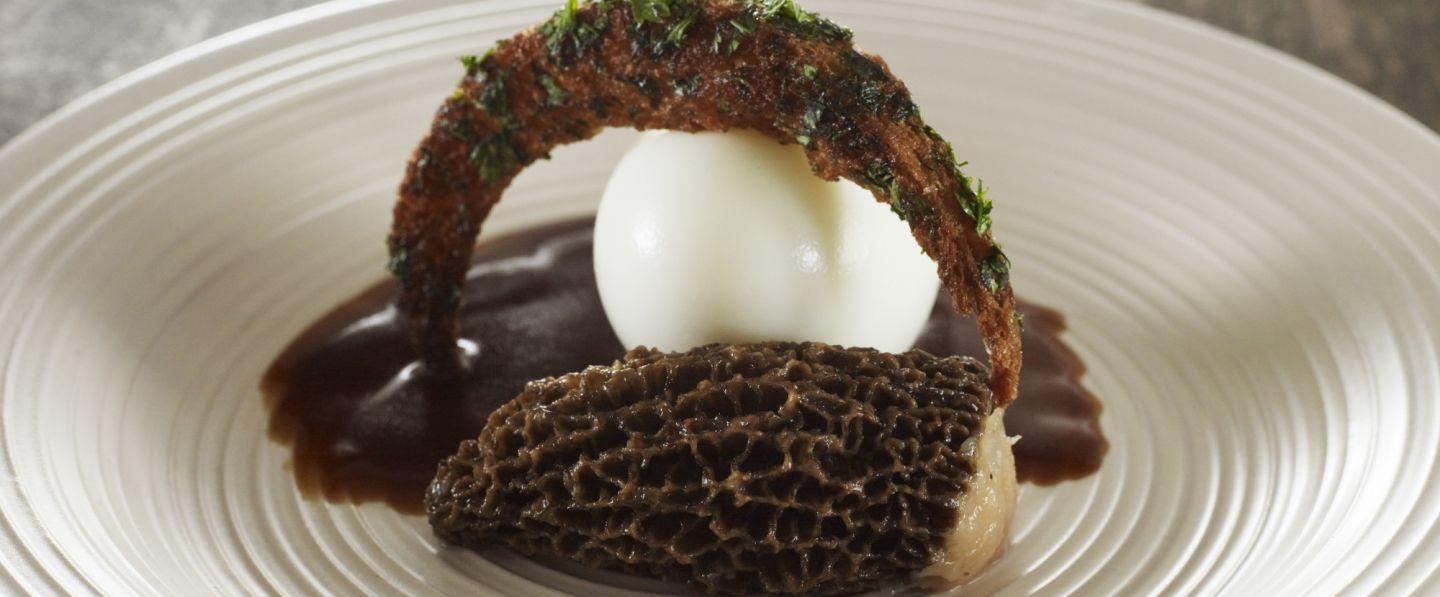 Faire chauffer la sauce, plonger les œufs dans un bain d’eau chaude à 75°C pendant 5 min et réchauffer les morilles.
