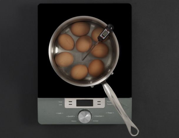 FacilePlonger les œufs pendant 12 min dans une eau à 70°C. Les maintenir tièdes mais en dessous de 65°C.