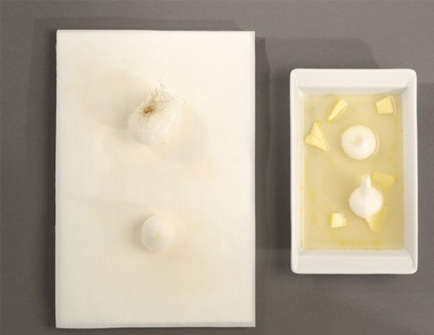 MoyenÉplucher les oignons et enlevez le nombre de couches nécessaire afin qu'ils soient tous de la même taille.