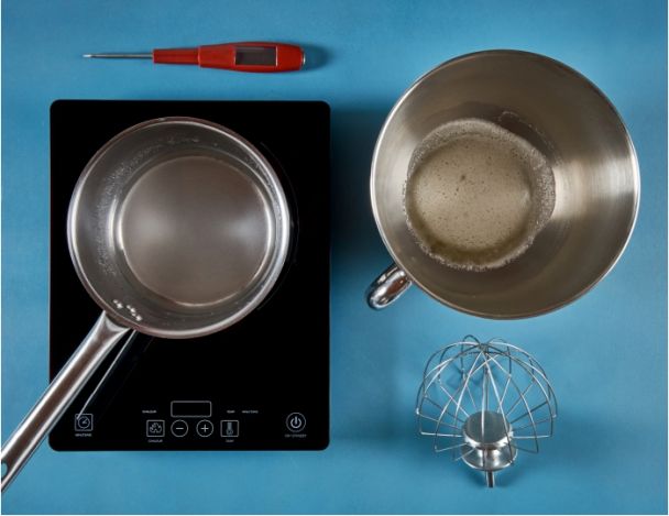 FacileFaire chauffer, progressivement, les œufs et le sucre jusqu'à 45C°, puis faire refroidir à 30C° à l'aide du batteur en 2ème vitesse.