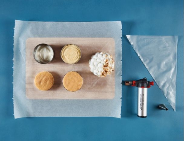 Avant de servir, démouler les omelettes norvégiennes et décorer de meringue italienne à l'aide d'une poche de décoration. Brûler au chalumeau et servir (possibilité de flamber au Calvados).
