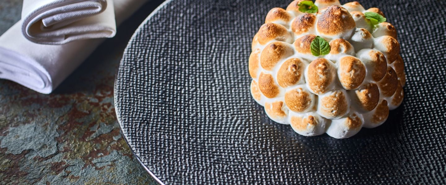 Le chef Marc Boissieux vous présente cette délicieuse omelette norvégienne meringuée parfumée à la glace cannelle et au sorbet pomme. Esthétique et légère, cette recette de chef épatera vos convives !