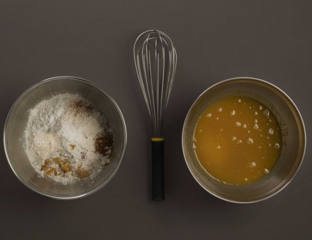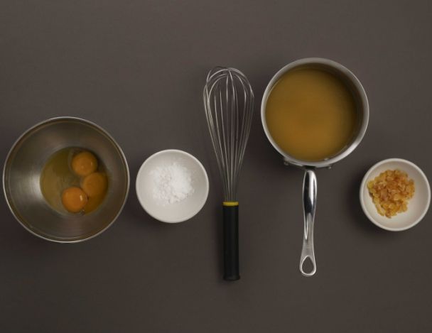 Mixer les jaunes d'œufs avec 3 cuillères à soupe du mélange au miel, Ajouter le bicarbonate de soude, puis le reste du mélange au miel en fouettant vigoureusement.
