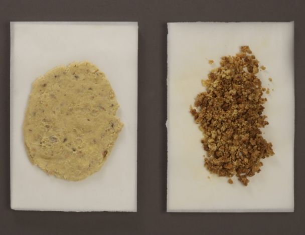 Étaler la pâte sur une plaque, enfourner 8 minutes à 180°C(Th.6). Émietter grossièrement le crumble. Laisser refroidir.