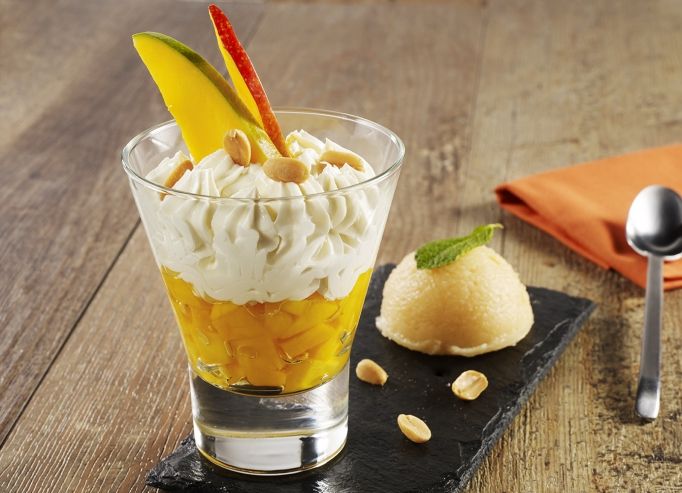 Cette délicieuse recette de dessert du chef Jean-Marie Baudic : la panna cotta cerise, crumble de cacahuète est fraîche et gourmande, alliant croquant et fondant. Elle ravira vos convives pour le dessert !