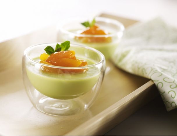 Cette recette de Panna cotta à la pistache, accompagnée d'une marmelade d'abricot est proposée par le chef Thierry Bamas. Légère et colorée, cette recette épatera vos convives au moment du dessert !