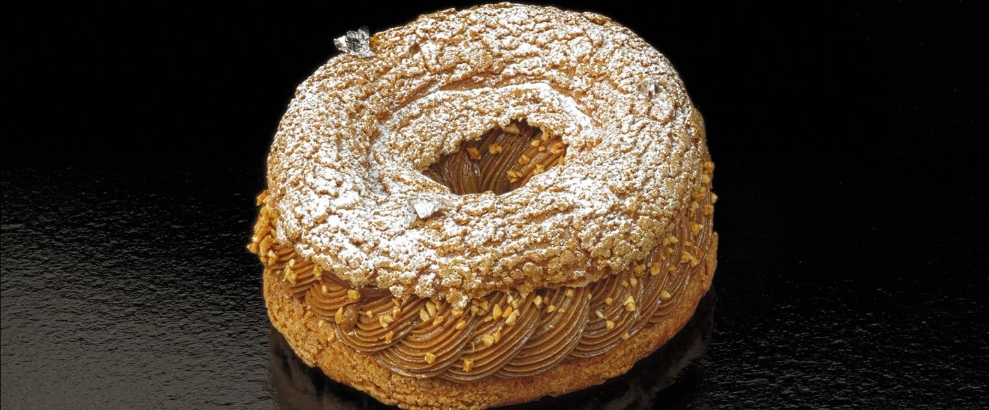 Le Paris-Brest est une pâtisserie en forme de couronne, composée d'une pâte à choux fourrée d'une crème mousseline pralinée, garnie d'amandes effilées. Ce dessert est un gâteau incontournable de la pâtisserie française et est idéal pour les pauses goûter ou les tea time.