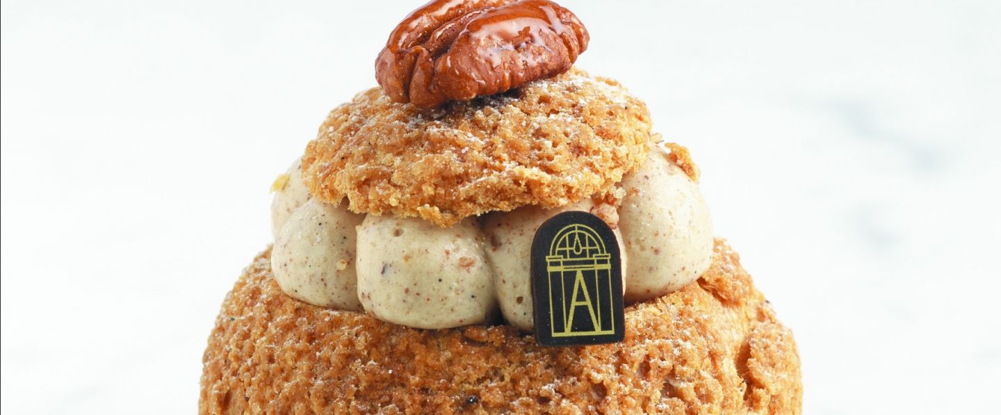 La Pâtisserie Angelina réinterpréte le célèbre Paris-Brest dans laquelle la noix de pécan (symbole des Etats-Unis) remplace la praline.