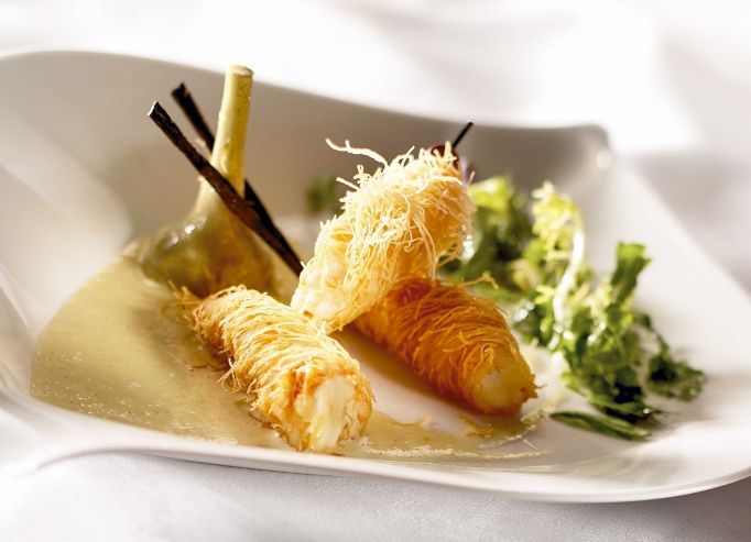 Servir les pavés de cabillaud accompagnés d'une quenelle de brandade. Présenter l'huile épicée, chacun versera un filet selon son goût.