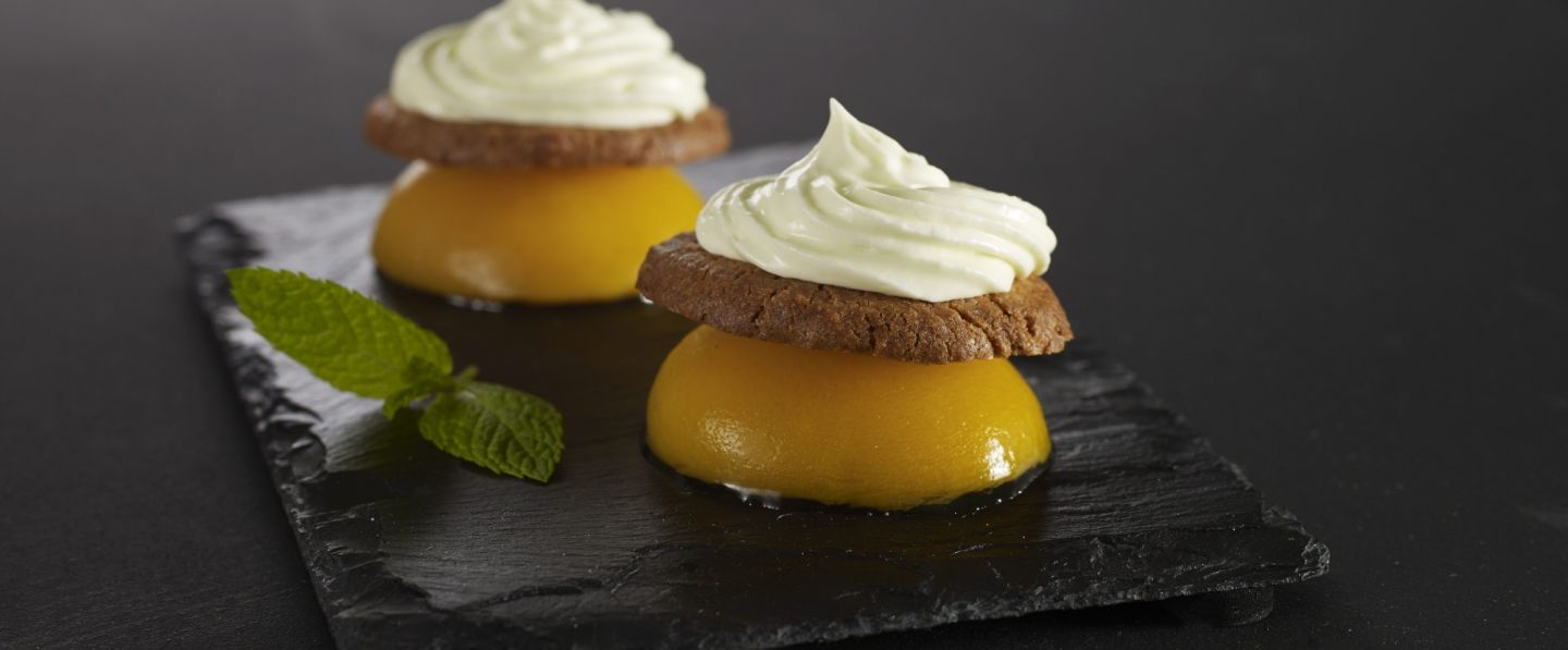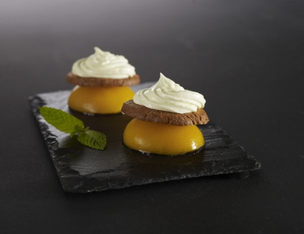 Pêche verveine, sablé breton, chantilly menthe