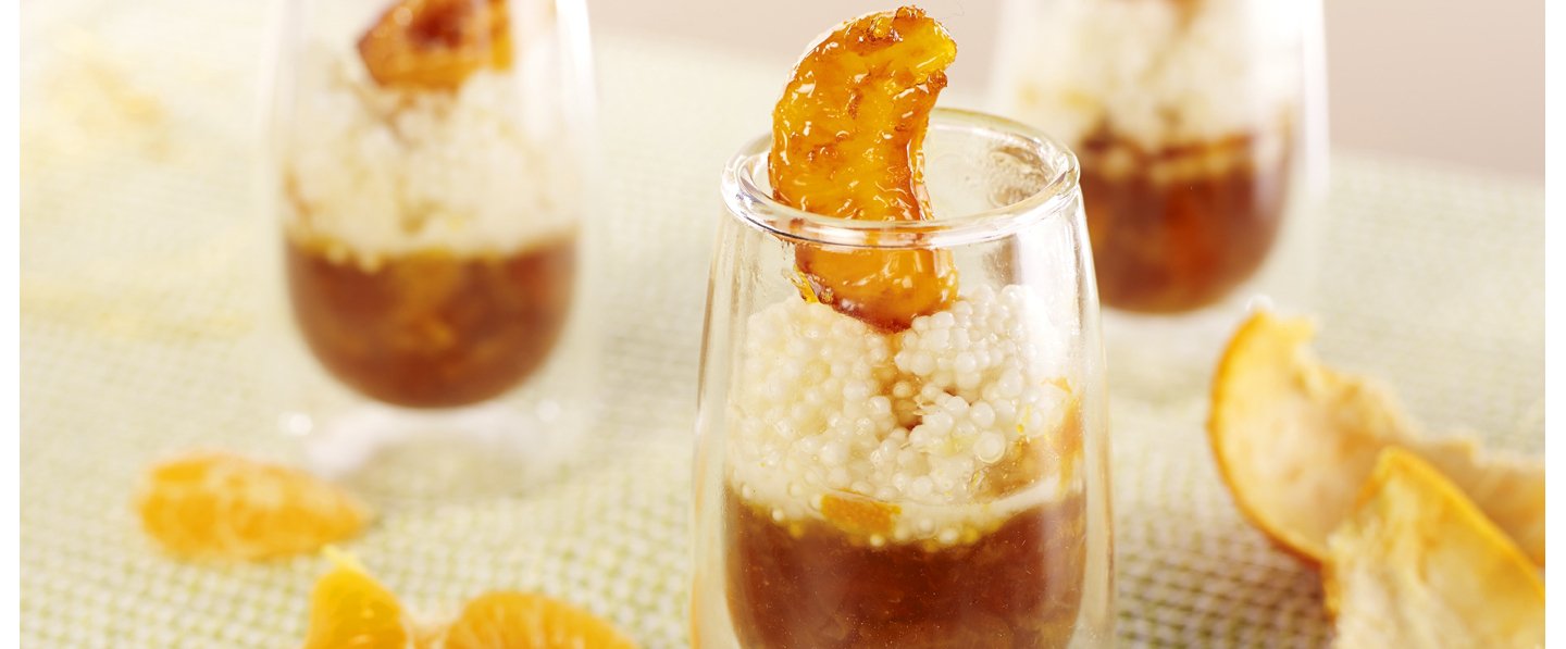 dans les verrines sur les perles du Japon cuites.