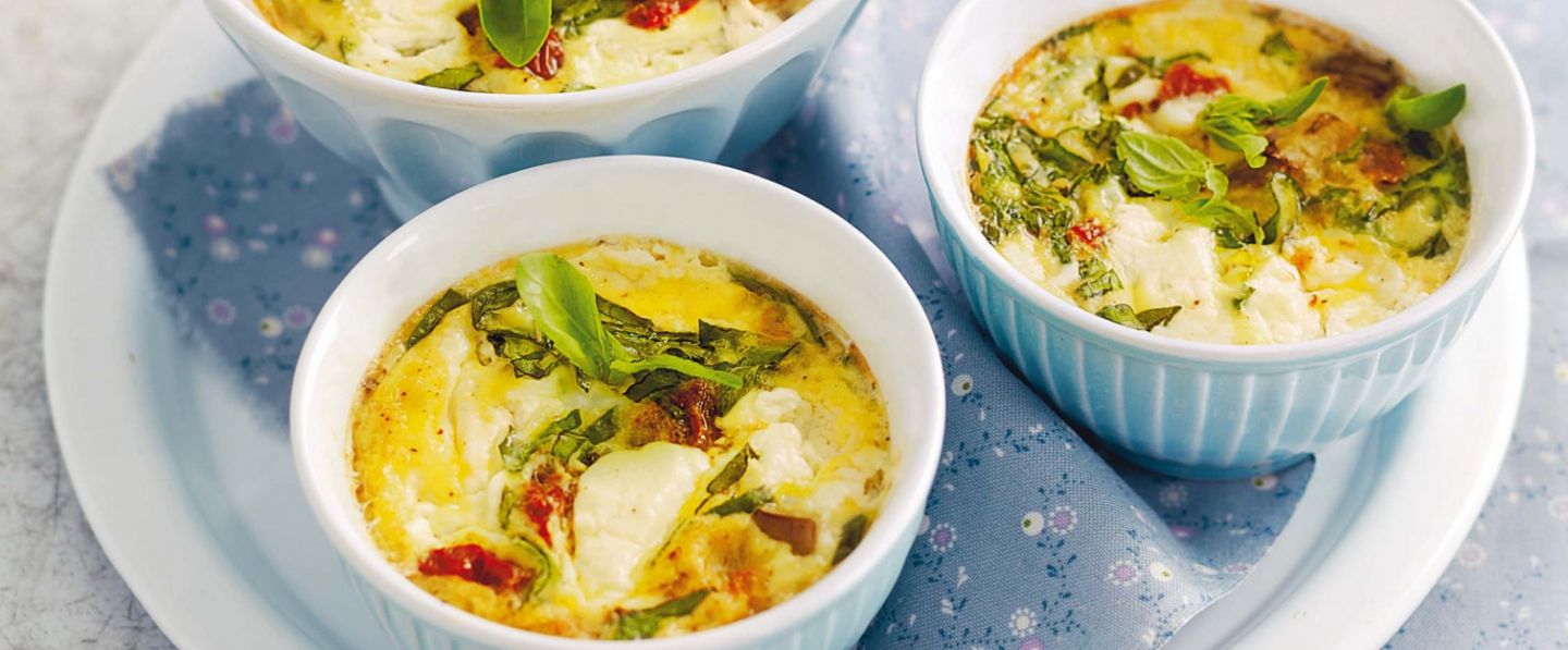 Versez la préparation dans les moules, sur les légumes. Enfournez pour 10 minutes, puis servez chaud.