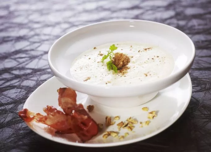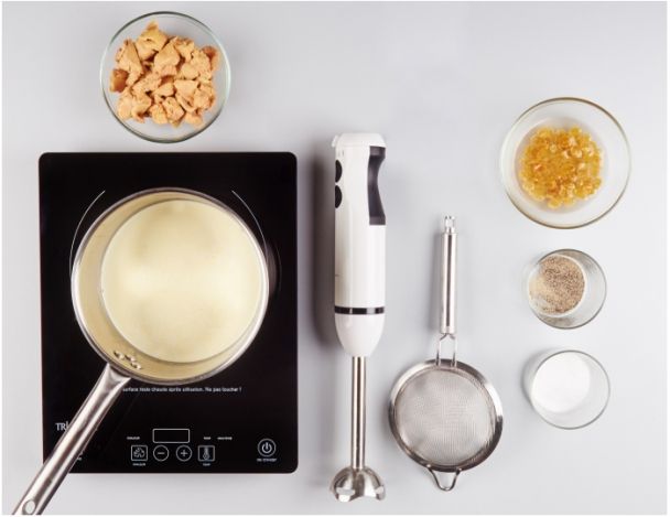 FacilePorter à ébullition le lait et la crème. Ajouter le foie gras cru et mixer. Filtrer la crème à l'aide d'un chinois. Saler, poivrer et laisser reposer 2 heures au réfrigérateur.