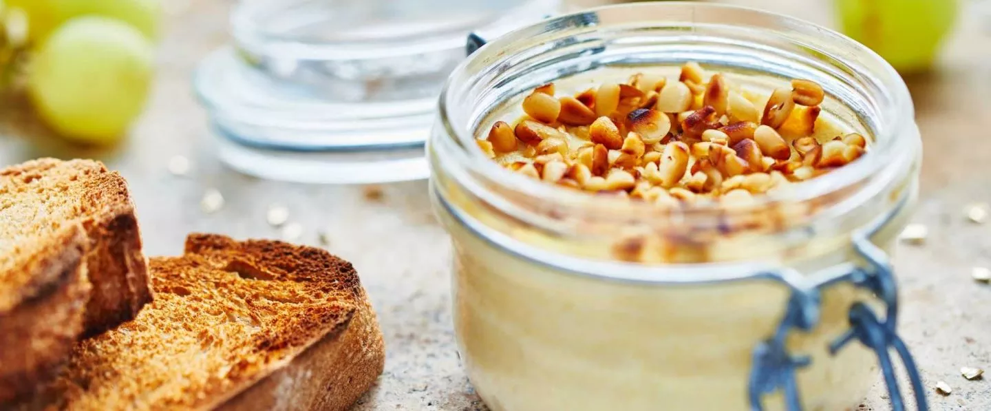Pour la dégustation, couvrir la surface des petits flans d'un peu de pignons de pin grillés. Servir les petits flans avec des tranches de pain de campagne toastées.