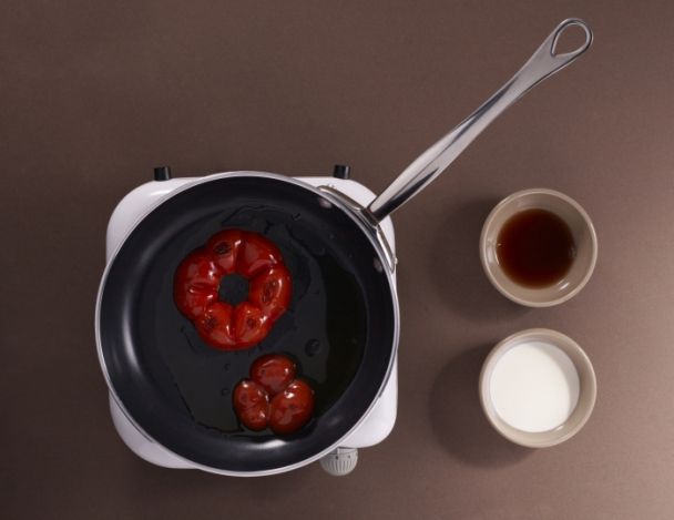 FacileCouper les extrémités des poivrons et les faire revenir dans de l’huile d’olive, déglacer avec du vinaigre de Xérès. Réduire, ajoutez la crème et faire bouillir. Saler, pimenter.