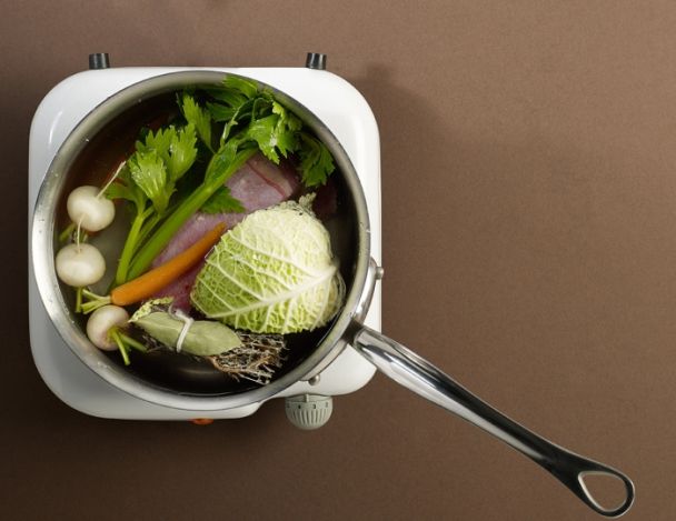 Cuire la viande avec la garniture de légumes comme un pot au feu, (la vianden doit être de bonne qualité car le bouillon vous servira chaud ou froid et les légume aussi pourront être servis en salade, purée ou autre). Laisser cuire le tout 2h30. Ensuite débarrasser le tout et le filmer. Laisser au réfrigérateur toute la nuit.