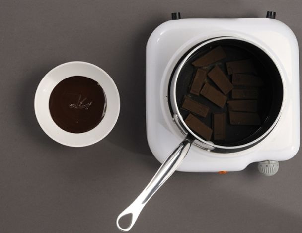 Casser le chocolat dans une casserole. Couvrir d’eau à hauteur. Chauffer très doucement en remuant jusqu’à l’obtention d’un coulis brillant et onctueux.