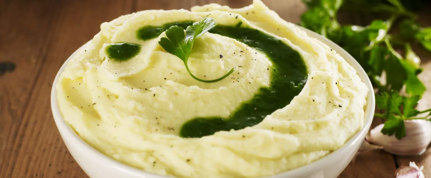 Réunir la purée d'ail et de pommes de terre. Verser le jus de persil.