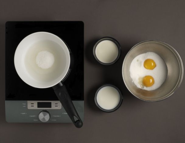FacileMettre le sucre, l’eau et le vinaigre dans une casserole jusqu’à l’obtention d’une couleur dorée. Arrêter la cuisson en incorporant la crème et le lait. Laisser sur feu doux afin de bien faire fondre le caramel.
