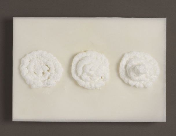 Monter les blancs en neige et les serrer avec le sucre. Mettre les blancs en neige dans une poche à pâtisserie et leur donner une forme de pyramide en créant des cercles successifs de plus en plus petits. Mettre à cuire au four à micro-onde à puissance moyenne par séquence de 10 secondes (2 à 3 fois de suite suivant la taille de la pyramide).