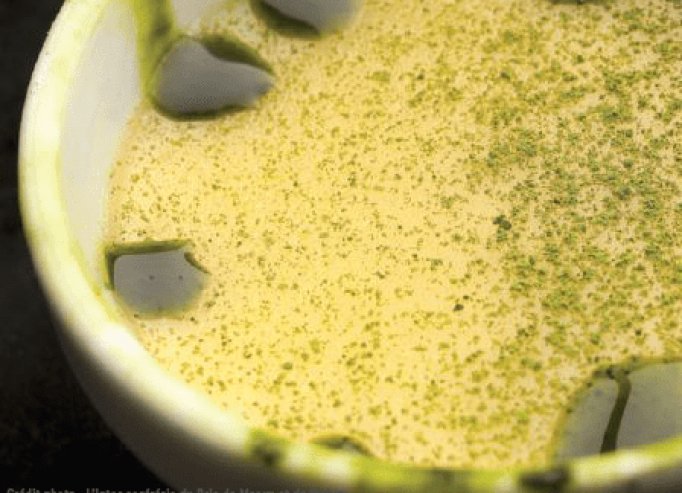 Dresser la crème froide dans les assiettes creuses, poser la pyramide et la piquer avec les amandes grillées.