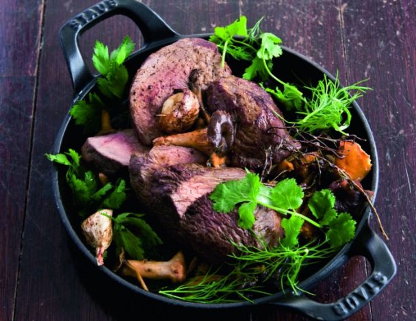 La chair tendre et fine du quasi de veau rôti est délicatement parfumée avec des herbes fraîches : coriandre, aneth, cerfeuil, persil... de belles saveurs sont au rendez-vous pour ce plat de chef !