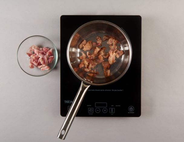 Tailler les parures de veau uniformément en dés. Colorer fortement les parures dans un rondeau et les débarrasser dans une passoire. Dégraisser la casserole.