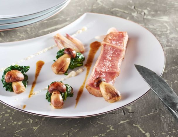 Une belle recette de viande grillée à la plancha, pour une chair moelleuse et tendre, que l'on garnira de cèpes poêlés et d'épinards sautés. La sauce au raifort apportera à ce quasi de veau une pointe de piquant !