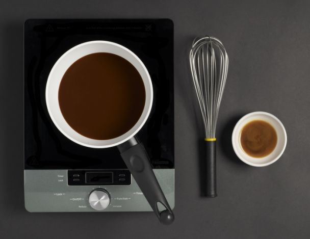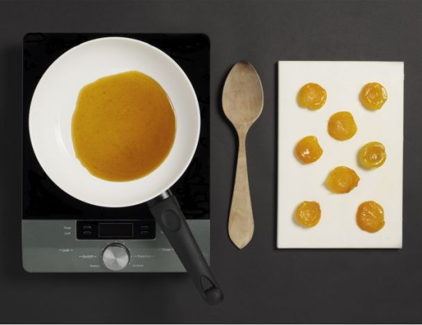 Retirer du feu et reserver les abricots cuits. Réduire la sauce jusqu'à obtenir un aspect sirupeux. Puis réserver.