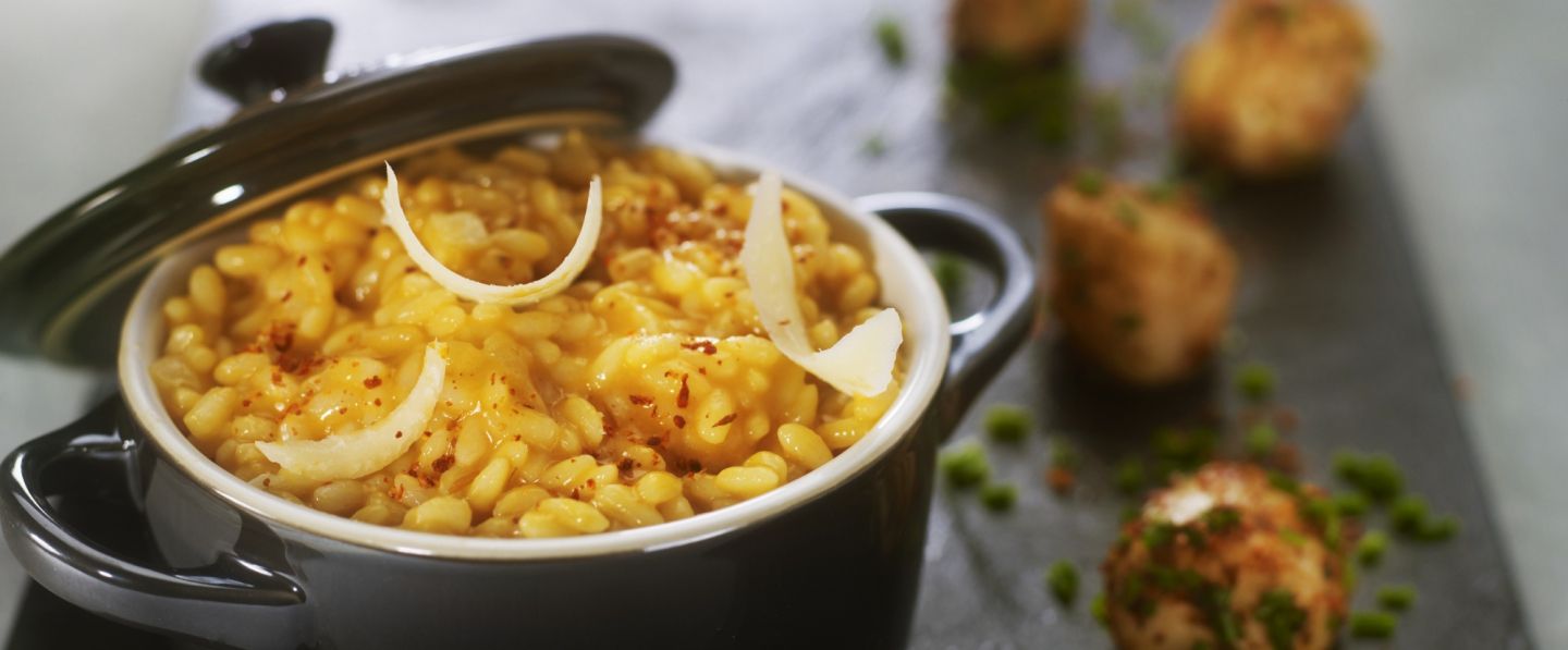 10 min avant de le servir, remettre le risotto dans une casserole et ajouter la crème et le parmesan.