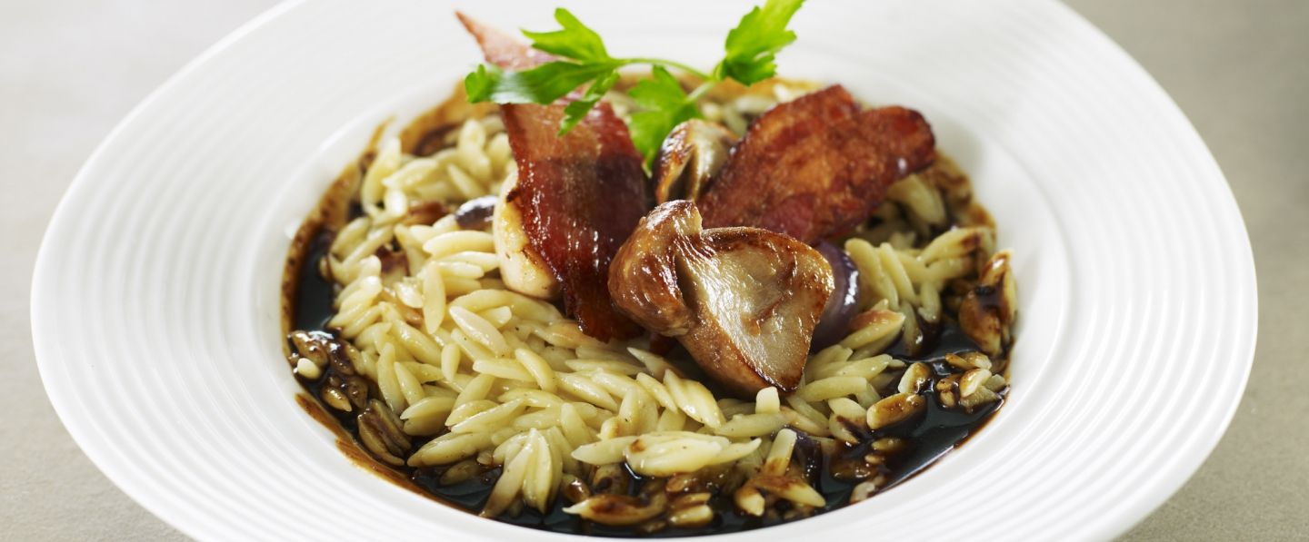 Cette recette originale de risotto aux cèpes et lard croustillant est composée de ces petites pâtes en forme de grain de riz que l'on retrouve dans les pays du Maghreb. Une idée créative pour revisiter le risotto traditionnel !