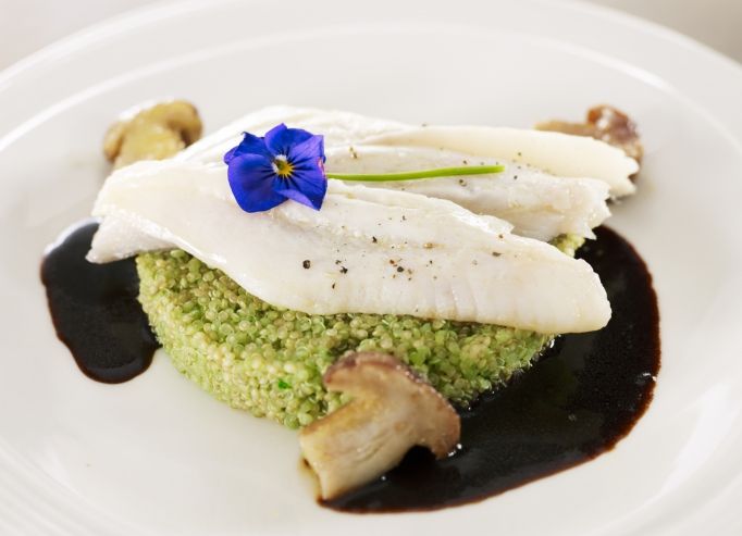 Dresser les cèpes au centre du risotto, verser le jus de veau monté au beurre autour du risotto, placer le lard croustillant sur les cèpes. Saupoudrer de Parmesan et ajouter un trait d’huile d’olive avant de servir.