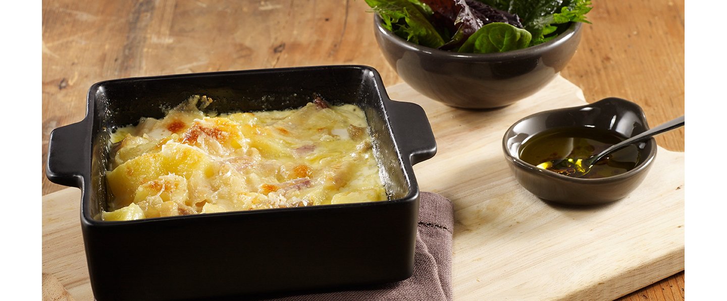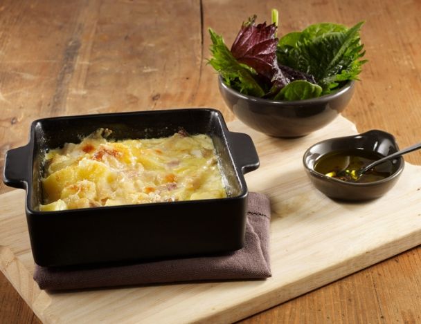 Gratiner dans un petit plat à gratin et saupoudrer d'emmental. Servir accompagné d'une salade verte.