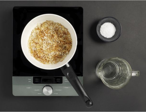 FacileDans une casserole, faire chauffer la margarine et faire revenir les vermicelles jusqu’à coloration brune.
