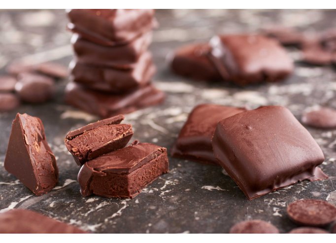Préparer le chocolat amandes pour le trempage. Pour obtenir un chocolat brillant, le fondre doucement au bain marie à 45°C puis le refroidir sur un marbre à 27°C et le réchauffer tout doucement entre 32°C et 33°C.