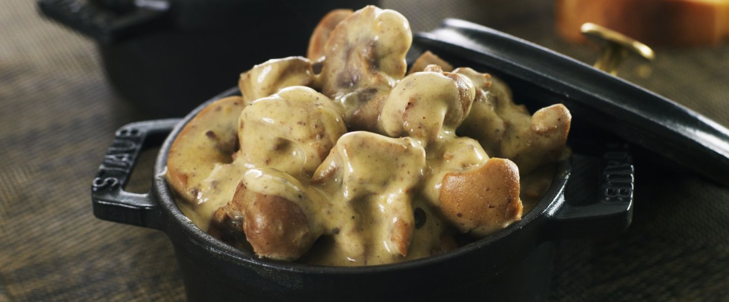 Laisser encore réduire de moitié, arrêter la cuisson et ajouter la cuillerée de moutarde. Mélanger, saler et poivrer.