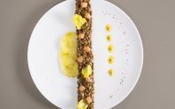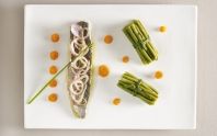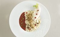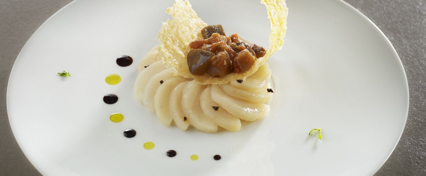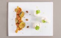 Disposer au centre d’une assiette le confit d’aubergines en cercle.
